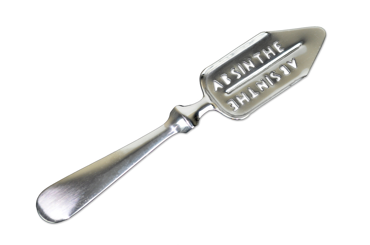 This “absinthe spoon” is aptly named due to the word “absinthe” being cut out on it’s grill. The sugar cube would be placed on the middle and the sugar water would drip through the letters and into the absinthe. This is a popular item due to the fact that it is a cross between a classic absinthe spoon and a modern.